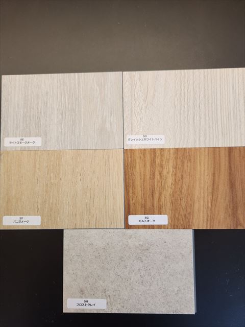 カラーは木目柄4色、石目柄は1色の全部で5種類になります。
